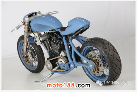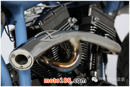 ZT搭載的V型大雙缸和6速齒輪箱都來自于Ultima,發(fā)動機排氣量超過2000cc,能夠輸出雄渾滂沛的扭矩;二合一排氣系統(tǒng)則由野性工坊自制,由兩條锃亮的排氣管交叉成Y型,顯得精致優(yōu)雅。
