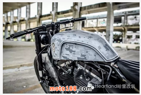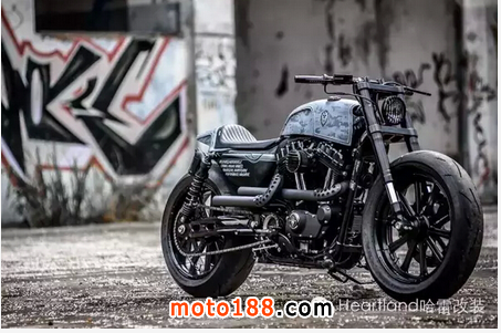 在這臺“古惑仔” 中,Winston完美的將哈雷 與街頭霸王的兩種風格結合在一起. 將XR1200 的swingarm 裝上之后,48的街頭霸王輪廓就漸漸出現了. 接下來的一切就都順其自然了. 使用來自Suzuki GSX-R600的倒叉與背馱式的抗震系統, 讓整輛車的操控性加強.