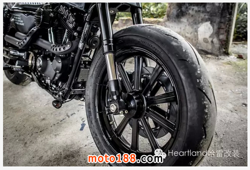 在輪胎方面,Winston 將原廠48的輪胎尺寸加大并升級. 前輪在尺寸上加大了兩個尺碼,變成了18寸. 而后輪則升級成了17寸.