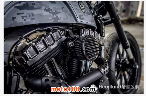 在這臺車中,最引人注目的就是直桿的排氣系統,帶翅片的空氣過濾器. 噴漆方面,顏色是藍中帶灰,像這類被稱為帶有數字感的迷彩風則是第一次使用在改裝車中.