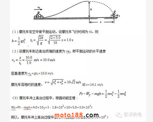 可以看出,摩托車落地速度其實比初始速度要快40%左右,空中飛行大概只有1秒鐘,可謂得失在一瞬間,這是非??简炣囀值男睦硭刭|(zhì)和技術(shù)水平的。