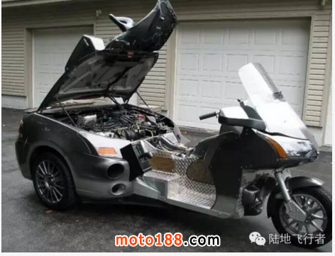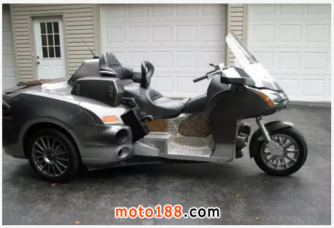 不過,國外有位腦洞大開神人,想到一個超贊的解決方案,結合重機的靈活操控,以及汽車的馬力與置物空間,自行打造出一臺真正的合體混種三輪車!