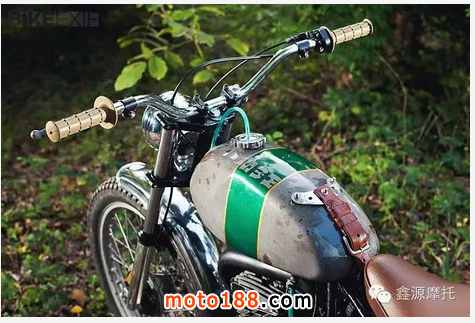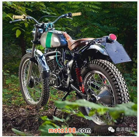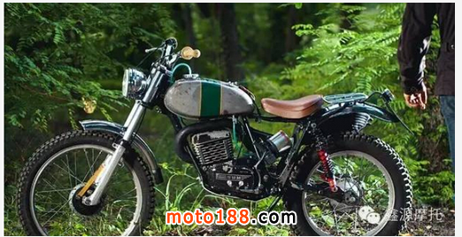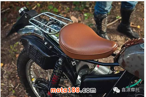改裝方向上遵循了原車的越野風格,為追求簡單質樸的味道,找到了現代仿制的鼓剎輪轂和前叉,借鑒自老式機車的單人座和源自自行車的小貨架,平添了幾分親切的感覺。