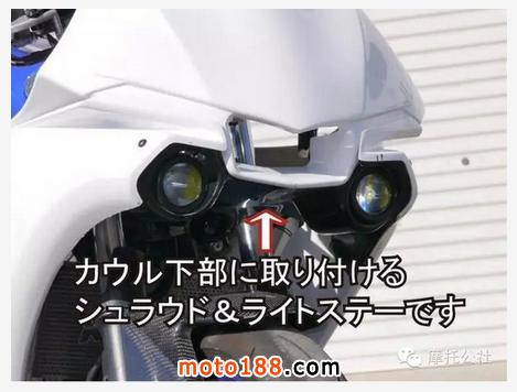 YZF-R3/R25用 R1-type外裝改裝零件包括全覆式整流罩、風擋、專用裝飾板和大燈支架等,不過PROTEC LED燈不在該套件內。