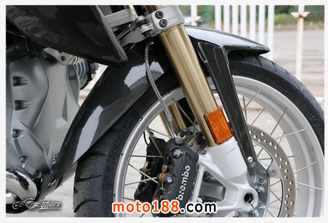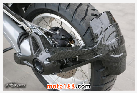 從外觀上來(lái)看,裝配碳纖維套件的寶馬R 1200 GS看起來(lái)就像是一個(gè)威武雄壯的黑武士。