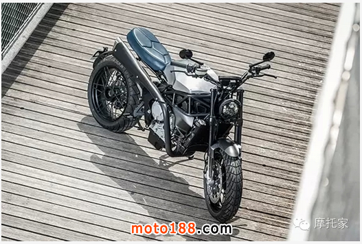 這輛Lara 800是基于MV Agusta Brutale 800打造,原車本來就擁有出色的性能,無論是機械還是電子件幾乎都用上了最好部件,因此基于此打造出的Scrambler性能毋庸置疑。Lara 800絕對是一輛陽剛氣十足的車,激進的車身設(shè)計向外界傳達出的訊息不言而喻。而手工打造的一體式鋁合金油箱及車座上包裹著高等級的藍色皮革,細致的做工加之完美的比例,又透出一股法蘭西式低調(diào)奢華。