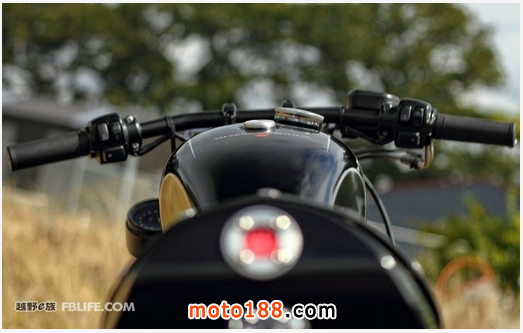 座椅是重新使用硬泡沫手工雕出來的,給人的第一感覺是騎馬的鞍子,這也增強了整車的咖啡復古感覺。在車尾,技師專門從新設計了尾燈,非常個性。