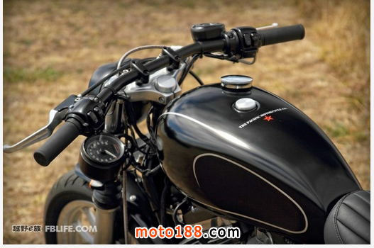 為了給本身比較單板的883增添運動風格,太平洋的技師按照咖啡風格降低的前把,不過并不完全是純咖啡風格的倒八字。與此同時,車燈的位置也下移了不少。