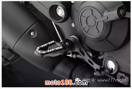 全身素黑的配色隱約在油箱與前土除上可以看到黃色的拉線,讓整體不會過于單調(diào),油箱與前土除顏色以亮灰做為搭配,在這么低調(diào)的配色底下,還是能發(fā)現(xiàn)許多精美的細節(jié),不同的材質(zhì)之間互相交錯的美感,讓人不禁贊嘆,在這么素的配色下還能擁有這么多的層次感,相當不容易!