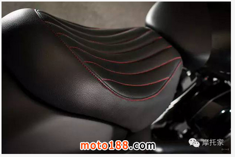 在原裝座椅上安裝了一個定制坐墊,重置了點火鎖和喇叭使外觀看起來更加簡潔一體。在廉價摩托車上會看到的線束也被部分隱藏。中控噴上黑漆并打孔裝上了哈雷的“Silencer”腳踏。
