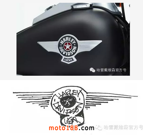 △ 這款油箱勛章是由哈雷家族的傳承者Wiliie G.親手設計的,它由五角星、USA、 HARLEY·DAVIDSON和一雙翅膀組合而成,兼具懷舊意味以及對美國文化的熱愛,是否讓你回憶起戰爭時代的軍用哈雷犀利的氣質?