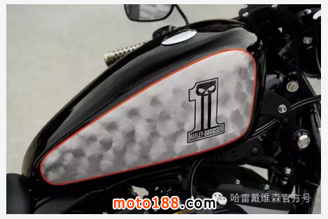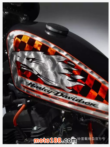 △ 這款油箱來自全新哈雷戴維森Street 750摩托車,金屬制淚滴形油箱用硬質冷鋼鍛造及優質噴漆打造而成。