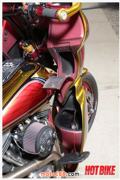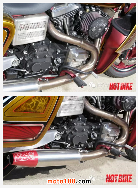 BBC的創始人Kevin在解釋這幅作品時說,其實這臺街霸改裝不是簡單塑造badass的形象,更是匠心獨運地融合了BBC產品線中所有為哈雷戴納車系設計的改裝件,包括整流罩、邊箱、前叉、電池箱蓋、電線線束,以及戴納排氣管等等。難怪它的風格會如此統一!
