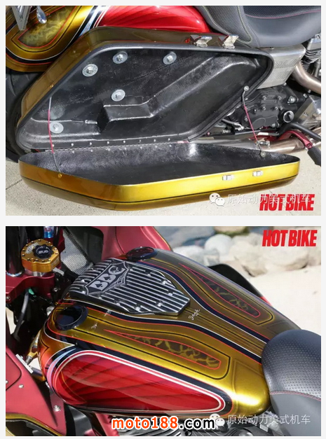 為了提升性能,發動機用上了S&S的T143,最大馬力可達162匹,還用了Baker的7速變速系統。改裝后的車性能非常卓越,曾經創造了10天3500多公里的拉力過程中零故障的記錄,而且中途多次將時速拉到250碼以上,可見其動力之強勁,性能之可靠。