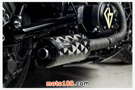 這是一輛以雅馬哈XV950為改裝原型車的作品,無論是造型還是配色都十分現代,帶有現代氣息和濃烈的哥特主義風格和波普藝術(Popular Art)的特點。這輛車出自瑞典GS Mashin的手工改裝作品,個性十分鮮明。
