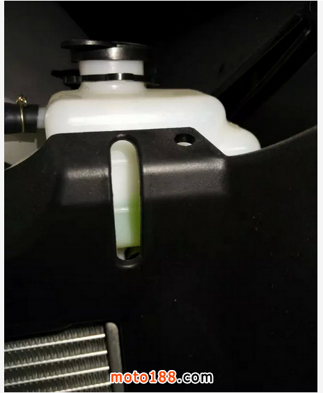 GPR與cafe有所不同的是,兩款車型的冷卻液加注口位置在散熱器的兩邊,因此觀察位置也不同。