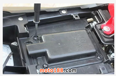 兩款車的空濾位置都相同,在騎士的座包墊正下方,打開座包墊,用隨車工具的十字螺絲刀取出4顆螺釘即可看到空濾。