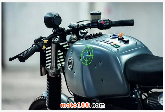 西西里定制摩托車商店的設計師Svako將寶馬經典款機車R100改裝成了“瘋狂的麥克斯”電影里的復古款咖啡摩托車“Sbang”。設計師在油箱上自帶彈孔,車身表面帶著些許灰塵或銅綠,儀表盤也沾滿污垢,配備又大又厚的海德瑙輪胎。這些設計使摩托車看起來特別靈動,能夠激發駕駛者的闖勁。而磨損、劃痕及彈孔等其它個性標記,就像是在騎行者馳騁的旅途中獲的,像是對這部摩托車傳奇故事的訴說。為了鞏固其“瘋狂”定制的風格,為新一代騎行者提供純粹、高性價比的騎行體驗。鍛造、精煉、加工直至極簡完美的“R100”硬漢車型在功能與風格之間達到了完美平衡,使其有自己獨立風格之余仍可激發車主自我創作的靈感。“瘋狂“定制摩托隱藏所有的接線儲氣罐,配備控制面板,一鍵啟動功能,配備1,170 CC雙缸發動機。隨著科技的發展加入的這些新興技術令摩托車的功能更加強大了,新型制造材料卻讓車身更加輕盈。由于配備了新式的套筒式前叉、新式擋泥板、以及預載可調節式螺旋彈簧,新車型的駕駛舒適度和操控感得到進一步提升。兩個車燈不對稱,一個安裝在車把上面,一個安裝在排氣管邊上,充滿了”瘋狂“元素,而且敏捷的寶馬“R100”車型更是跨入了以顧客需求及喜好為主導的定制新時代,并時刻引領全球風潮。