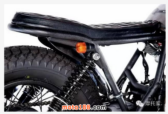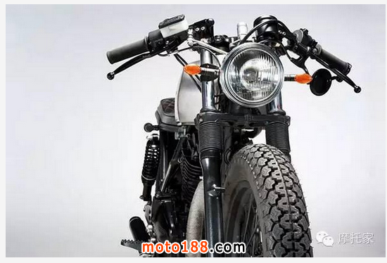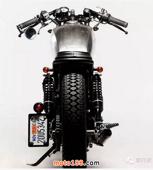 這款車兼具街車和cafe賽車的特色。低矮的分離式車把cafe勁兒十足。當然它也絕非徒有其表,原車掉渣的減震已被換為行程更長的MikesXS減震。為了整體的美觀,原車的儀表組也進行了大換血,只剩下了轉速表。