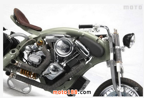 引擎與變速箱被固定于下鋼梁與中央龍骨上之間,在引擎的選擇上,sbay提供了多款S&S和Rev Tech的v2引擎給予車主們進行選購,而在這輛試作車型上,所搭載的是Rev Tech 1702c.c.排量的v2引擎,為了克服油桶被擺放在后搖臂后產(chǎn)生的汽油供應(yīng)效率的問題,sbay用高壓泵浦,讓汽油能快速地供應(yīng)給引擎。