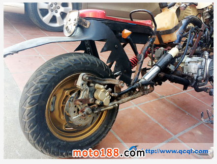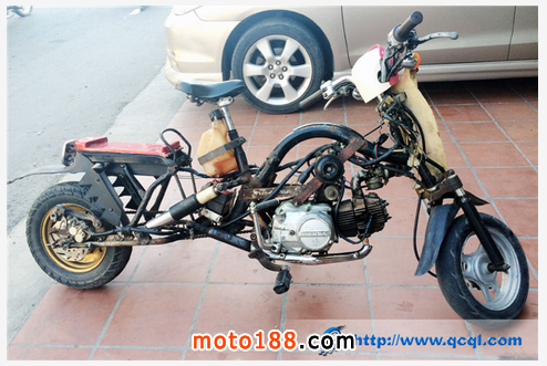 核心提示: 一部來自街頭的作品,搭載了一副 Honda Cub 50 的臥式發(fā)動機,踏板車/迷你車的 10 英寸前、后車輪,前鼓后碟的制動系統(tǒng),渦輪