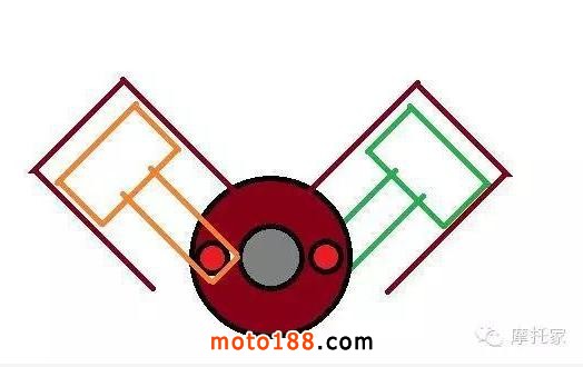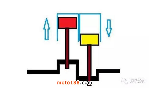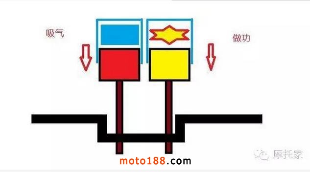 接下來是異步雙缸了 首先 異步雙缸的特點 就是曲軸正好錯開180度,異步機依靠曲軸對置180度造成兩氣缸相反方向運動 ,氣缸相反方向運動時可以抵消氣缸的相對運動造成的慣性 禳發動機工作更加平穩,自然提速方面有一定優勢。