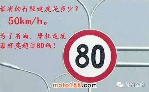 摩托車的經濟時速為每小時50公里左右。速度增加到每小時80公里時,油耗會增加15%,而每小時90公里時則會增加25%。
