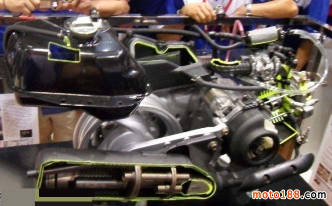 雅馬哈國3電噴豪華版迅鷹發(fā)動機系統(tǒng)的剖面圖