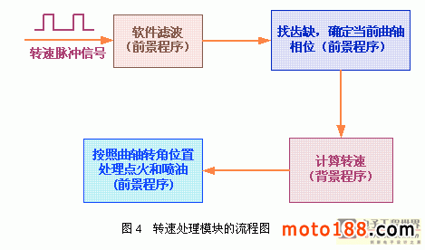 摩托車電控系統不同于一般的控制系統,由于摩托車上飛輪較小,發動機轉速波動較大,并且轉速最高達10000轉/分以上,對于系統的實時響應速度要求非常高,這些要求突出體現在對曲軸位置及轉速檢測、噴油正時及點火正時的實時控制等方面。