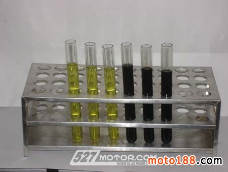 而從引擎連桿與汽缸內側看來,并非是機油量不足或者燒機油的反應,因此引擎這些機件并沒出現藍色的高溫燃燒反應,因此可以判斷出是因為機油潤滑不完全所造成,因為假機油沒有強忍的油膜與抗剪力,因此無法提供機件應有的潤滑性,讓金屬機件只能進行干摩擦,長久在高轉速、高溫的環境下,自然會造成機件毀損。