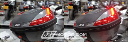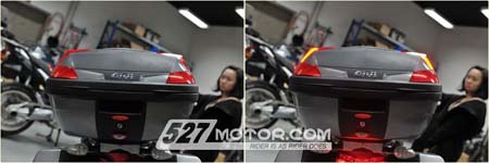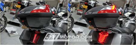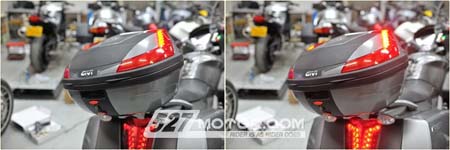 安裝的過程相當簡單,GIVI Monolock B47 Blade箱內已經預留燈座與走線的預留孔,只要將燈座預留外蓋卸下,然后裝上帶有LED燈泡的燈組,沿著預留的走線孔,然后再透過與尾燈上的線組進行連接即可。