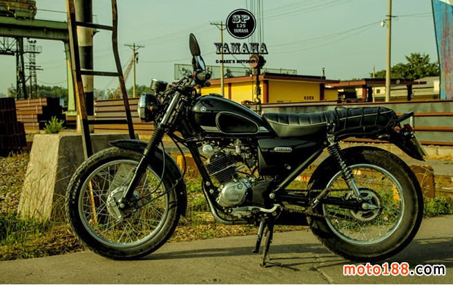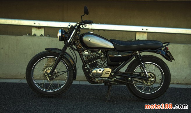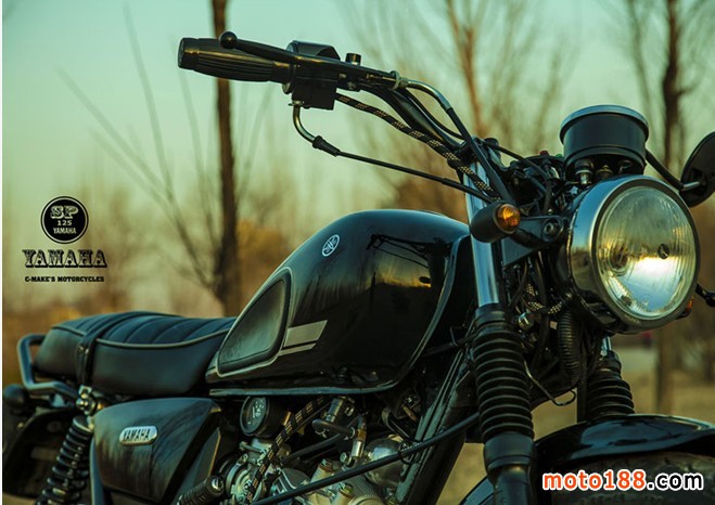 雅馬哈天俊有農(nóng)村車的基礎(chǔ),低調(diào)的選擇黑色。作為此車的規(guī)劃師,覺得黑色款是最適合這種傳統(tǒng)設(shè)計(jì)的車型。車到手不滿意的地方很多,目標(biāo)就是折騰至滿意,有今天的這個(gè)樣子完全依賴了淘寶上的配件、汽配城的皮具加工、五金店的各種螺絲、樓下不銹鋼加工的小工,還有汽車鈑金噴漆的作坊,自己僅僅完成了外觀的設(shè)計(jì)和組合,也包括一些小件的改進(jìn)制作:鋁制車后內(nèi)擋泥板、鐵制儀表架和燈架、排氣管尾嘴、鋁制過濾瓶等等。因工作繁忙,工具欠缺,從11月到現(xiàn)在改造歷時(shí)2個(gè)月,之后騎行1年過程中又陸陸續(xù)續(xù)進(jìn)行了部分改進(jìn)。此帖記錄了我對(duì)天俊進(jìn)行的歷時(shí)1年多的改進(jìn)過程,如果有新的改進(jìn)還會(huì)陸續(xù)更新與摩友分享。