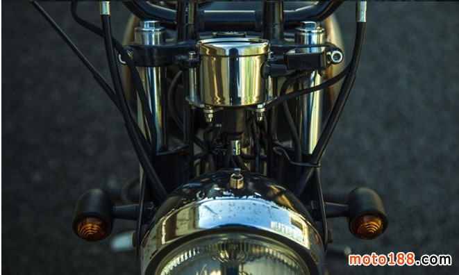 2、大燈架壓低,讓油箱與大燈成一條直線,大燈換了金屬的。