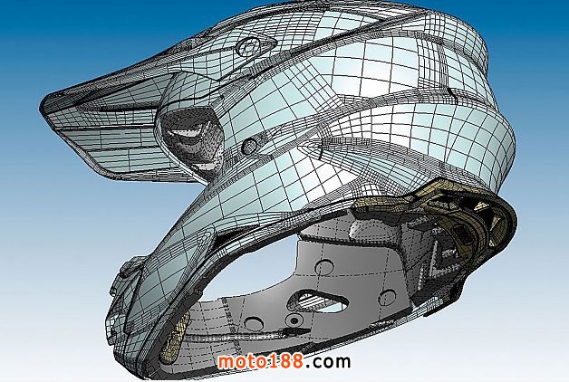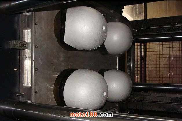 這里我們暫且只談聚碳酸酯頭盔外殼的制作,因?yàn)閺?fù)合材料頭盔的制作工藝大多保密,各有各的專(zhuān)利。相比之下,moto2s.com聚碳酸酯比復(fù)合材料頭盔更重,不過(guò)硬度也更大,復(fù)合材料頭盔常常會(huì)在事故中報(bào)廢,當(dāng)然這并不是只保護(hù)性差,它們可以理解為鑄造輪圈和鍛造輪圈的差別。
