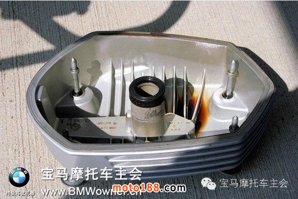 卸掉缸頭蓋后,確保黑色的密封橡膠像上圖一樣完整無缺的粘附在缸頭蓋上。有時候這層橡膠會站在缸頭上,小心撕下來就是了,然后放在缸頭蓋上。同時,我發(fā)現(xiàn)缸頭蓋螺絲上的螺紋附近都有個凸起,也許這個只是為了防止螺絲丟失或者上錯位置的措施吧。