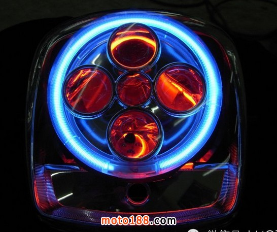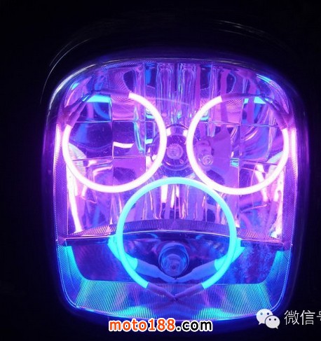 ↑以燈管原理設(shè)計(jì),主要都以圓圈型式為主,具有低耗電與壽命長(zhǎng)的優(yōu)點(diǎn),多半被運(yùn)用于機(jī)車魚眼周圍與風(fēng)扇內(nèi)側(cè)之處,不過CCFL是以玻璃易碎材質(zhì)制作,只能改裝于不易造成碎裂之處,范圍較受限制。