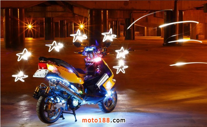 黑夜中一道華麗新光感,憾動(dòng)人心的音符也隨之而生,凝聚焦點(diǎn)并引領(lǐng)著目光,這是屬于暗夜才有的流光異彩,透過燈光巧妙改裝造就劃破寂靜黑夜的新星。