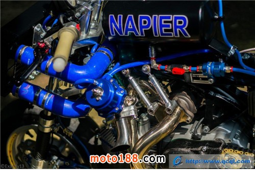 由于單缸發動機(特別是如MONKEY這類型小排量的發動機)的排氣特性和排氣壓力等原因,改裝渦輪增壓一般都出現在多缸發動機身上。這次英國OORACING所改裝的這臺Monkey是首次嘗試在小排量單缸機器上實現渦輪增壓,首先將這臺產自中國的臥式發動機加強,如中缸、活塞、連桿、氣門架構等,排氣量由于活塞和中缸的改變(62mmX57mm)而達到170cc。