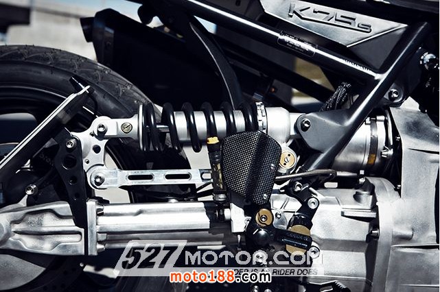 首先登場的這款K75,如果你的眼睛夠尖,相信你就能看出與原廠的差異!這款經過重新打造的K75,在后車架的部位采用手工重新打造,并且修改原本的后減震筒擺放位置!使其改為與后搖臂傳動軸相同的水平放置,而為了強化作動時的剛性與順暢度,在減震筒下方還增加了活動連桿。