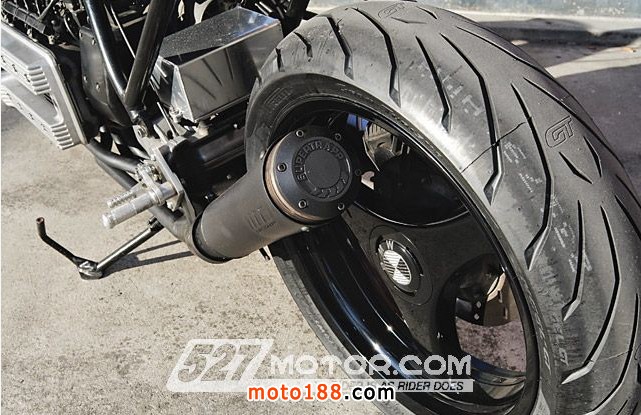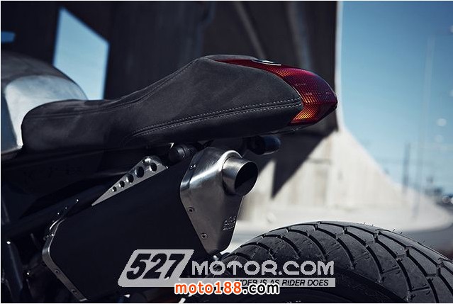而在其馀改動方面,另外重新設計了4-1排氣,從左側排氣口出來之后,直接匯集成單一大口徑管路,然后將排氣放置于座墊左側!其他的小細節方面,還包含手工油箱、麂皮座墊、(流用1150的尾燈),直接將尾燈與座墊融為一體,同時重新設計前上下三角臺,搭配新的倒立前叉與ISR上泵等高檔部品等等。