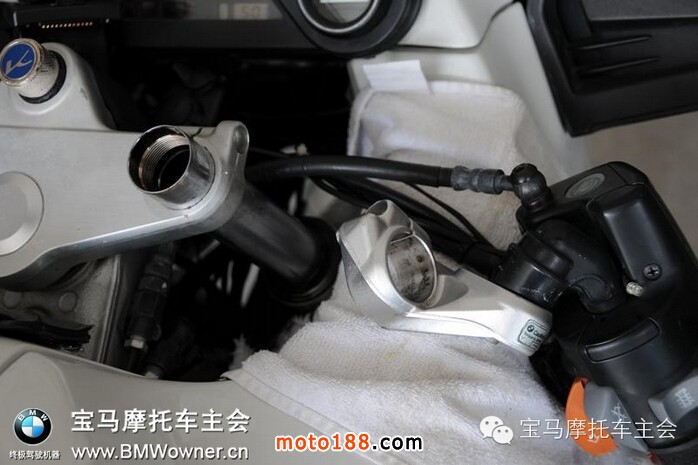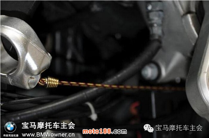 本可以用放油螺絲放掉前減震油的,但我這里正好有順手的抽油工具,就抽出來了。效果還不錯(cuò)。下邊是以前操作時(shí)候留的圖,只是給大家看看抽油機(jī)的樣子:
