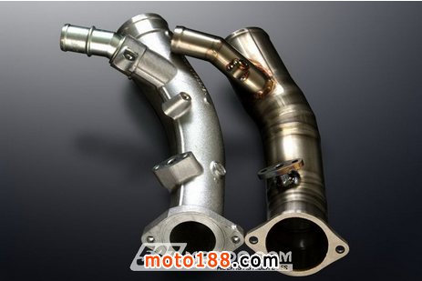 鈦合金排氣除了前面所提到的諸多優(yōu)勢之外,多段式焊接也是提升排氣效率的主因,另外由于相同密度下,擁有更高的強(qiáng)度,因此在相同的外徑條件下,管壁內(nèi)徑可以做得更薄,提升整體的氣體流量與流速!圖為Nissan GT-R的鈦合金進(jìn)氣歧管,內(nèi)徑由45mm提升到60mm,當(dāng)然這是對應(yīng)了渦輪加大之后的進(jìn)氣量所需。