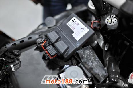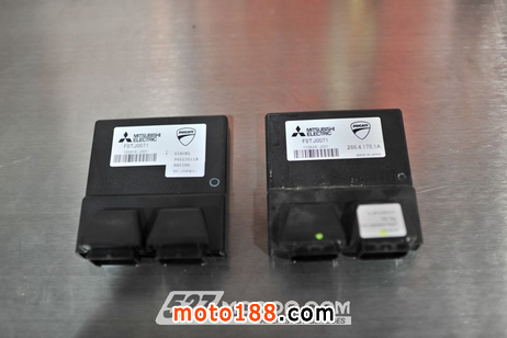左邊為Termignoni所配置的Racing競技用ECU,而右邊則為原廠電腦,同樣都為Mitsubishi所代工。