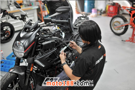 在換裝完排氣之后,技師又隨后更換了Termignoni所附帶的高流量空濾,與新的競技用ECU電腦,由于這些部件都放置于油箱內(nèi)層,因此整個換裝的過程較為復(fù)雜。待所有東西都換裝完畢之后,重新啟動電門發(fā)動,可以聽到整體聲浪較原本高亢許多,當(dāng)然也是因為已經(jīng)拆掉dB Killer減噪裝置,通過實(shí)際的騎行感受,可以發(fā)現(xiàn)整體動態(tài)輕快不少,在提速性與油門響應(yīng)方面,油門反應(yīng)的時間更快速,動力也比之前來得更快!