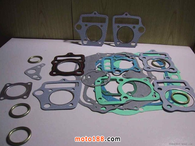 組裝發動機時,新品墊片的選用不可忽視,若選用了不標準的墊片,將會造成漏油、啟動困難(二沖程車進氣漏氣,造成混合氣過稀,故而難著車),更甚者將造成油路阻塞,引發新故障。尤其是上缸墊,要求嚴格,次品極易燒穿,該用石棉的不能用鋁墊,過厚還會影響壓縮比,致車輛難啟動,行車無力。另外,還要注意膠質墊片、密封圈不可漏裝,如CY80、DX100、AX100等曲軸上的膠圈,化油器接口上的膠圈。密封膠在發動機組裝時使用很少,只有在二沖程車中箱組裝時、CB機缸蓋上會用,四沖車發動機組裝一般一滴密封膠也不用涂,如C100、CG125、CG150、GY6等機上各結合處的墊片、膠圈便可密封很好。涂上密封膠雖有利于密封,但密封膠多了也會堵塞油路,引發新故障。若在有膠圈的結合處涂了密封膠,將造成膠圈被粘死,推失去密封效果,如CG125、GY6缸蓋處。