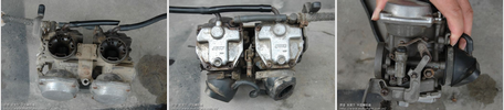 騎著出去試了一圈,變速,離合,剎車,架子,沒什么大問題,前缸缸頭有點雜音,不重,冷熱車一把就著,熱車怠速還可以,說明氣門這些問題不大,化油器平衡不太好,混合器絲擰不動,火花塞發(fā)黑,這么多年的化油器不出問題也不太可能。先把化油器拆解檢查