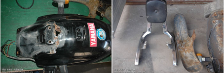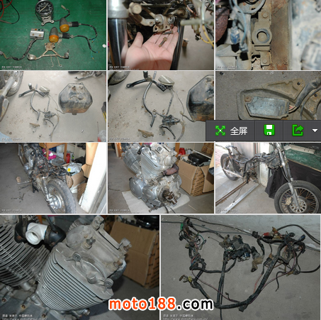 很久不玩大車了,無意中發(fā)現(xiàn)一輛舊的天王,跟車主聯(lián)系后,說發(fā)動機(jī)沒什么問題,就是電路有問題,發(fā)動不著,以很便宜的價格拿到手,是雙油箱版的,應(yīng)當(dāng)是89年的,拿到車后,先把電路理了一下,實際上就是一個保險絲有問題,通電加油,一把就著,試騎了一下,基本上心中就有數(shù)了,接著開始了漫長 的翻新之路,此次翻新全是業(yè)余時間搞,本人非專業(yè)人士,全憑喜歡和愛好,高手們別見笑,多多指點,此次翻新不是以換件為主,是先修,實在不行在換,以花最少的錢辦最大的事為原則,嘿嘿誰叫咱是窮人來。
