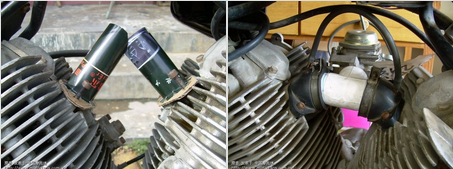 化油器清洗完裝機(jī)試車,發(fā)現(xiàn)咋樣調(diào)還是不行,太老了,狀態(tài)太差了,上網(wǎng)上一看力帆的雙化要380還不包好,太貴了,想到改個單化試試,找了個GY6的雜牌化油器,把電子風(fēng)門去掉人為的關(guān)掉,兩缸的連接管得做一個,哈哈先做了兩個紙管,試一下角度,不過試過發(fā)現(xiàn)這種做法很麻煩,取材不容易,本著簡單易用的原則,發(fā)現(xiàn)把原來的化油器接口膠轉(zhuǎn)一個角度,再找個三通管子就行了,去賣PVC管件的地方幾無錢買了一個,修改了一下,哈哈成功了。通過試驗,發(fā)現(xiàn)單化怠速很穩(wěn),省去了調(diào)雙缸平衡的麻煩了,下面上圖。