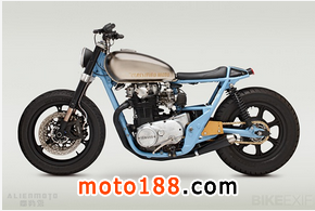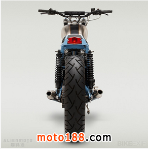 特別值得一提的是,為了和P.K. Ripper的風(fēng)格保持一致,XS650原車的輻條輪轂被更換為和自行車輪轂造型類似的“板輪”(Metzeler ME880前130/80-17, 后140/90-16)。此外,腳啟動桿的設(shè)計(jì)也絕對是點(diǎn)睛之筆。來自BMX自行車上的腳踏板完美的變身為“打火棍”。銀色的腳踏板和車身融合的恰當(dāng)好處,完全沒有違和感。