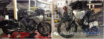 核心提示:這是一輛2008年款的勝利威神,12天后將煥然一新。第一步調整前叉套件角度,為后續更改21寸一體切削輪轂做準備。圖左為原車18寸輪